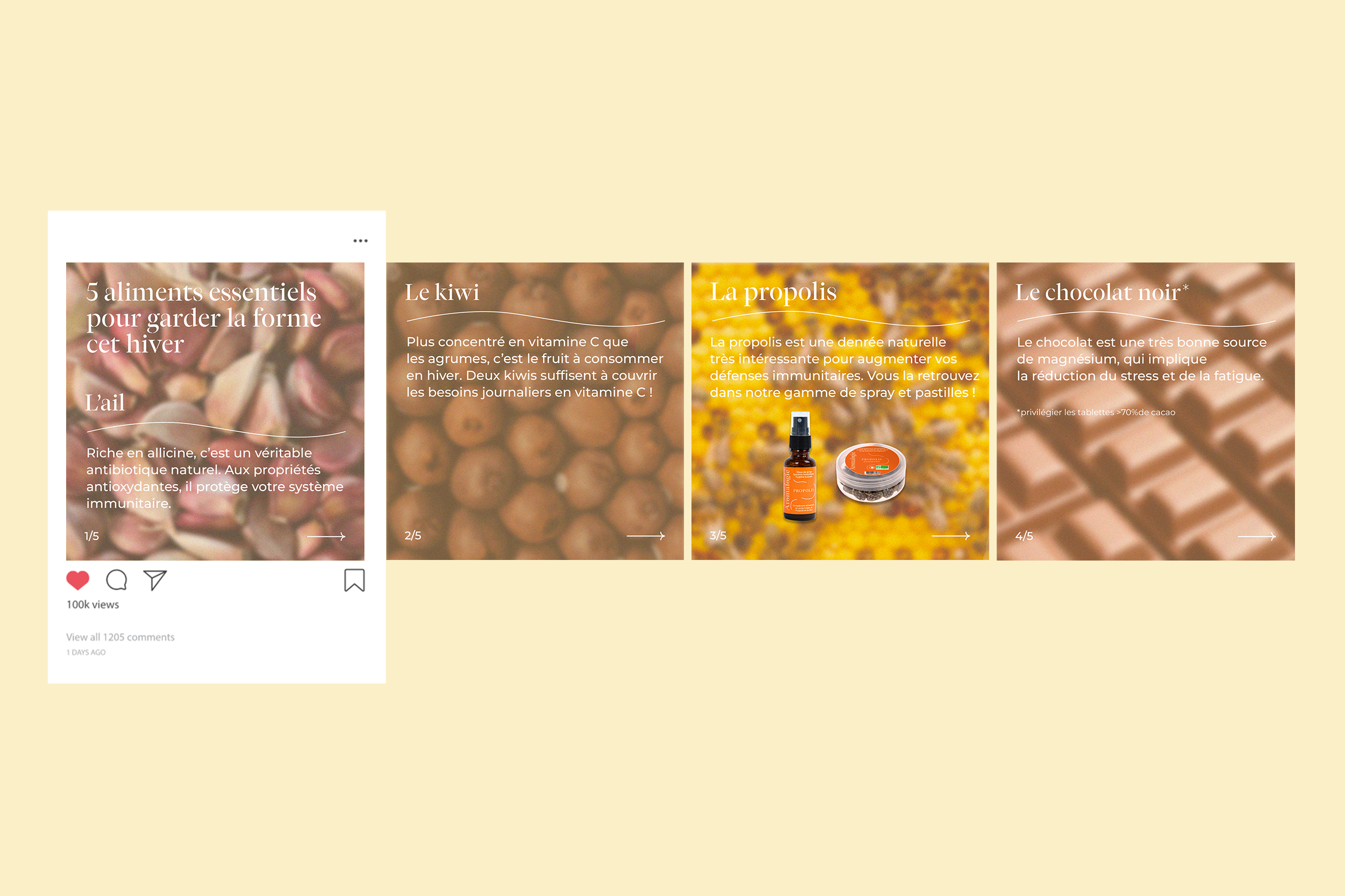 Création de posts fixes et animés pour relayer le concept et les produits de la marque sur les réseaux sociaux.