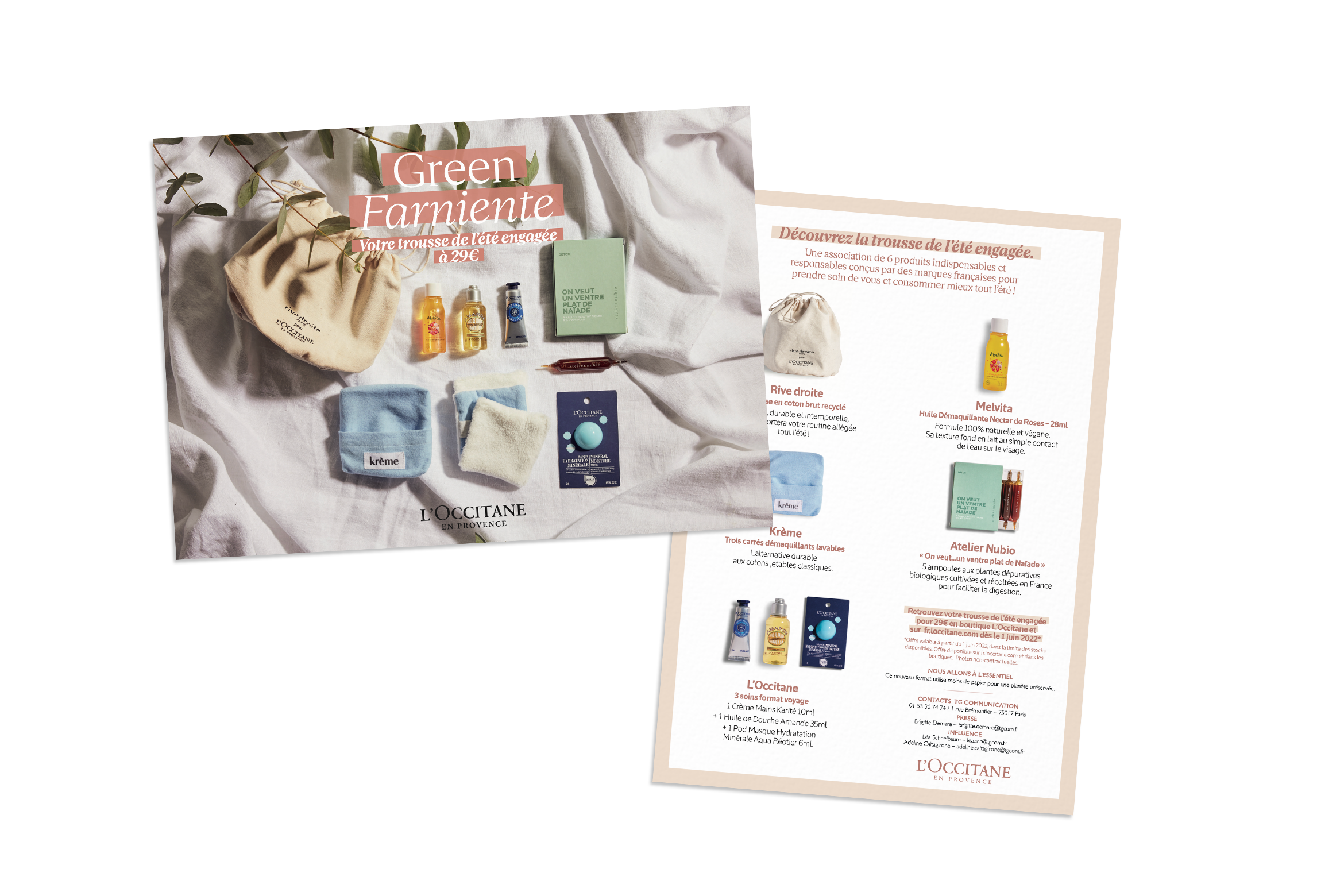 À travers un partenariat avec différentes marques françaises et engagées, L’Occitane en Provence propose une trousse de l’été engagée. Dans celle-ci, 6 produits indispensables et responsables invitent à prendre soin de soi et consommer mieux tout au long de l’été.